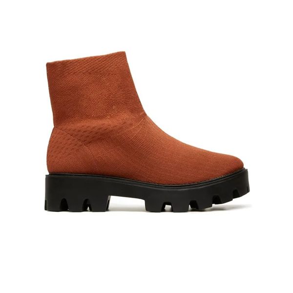 Bota com design moderno e minimalista, caracterizada pelo cabedal em malha elástica que se ajusta ao formato do pé e tornozelo, proporcionando conforto e um visual elegante. Ela possui um solado tratorado robusto, que garante aderência e adiciona um toque urbano e ousado ao modelo. A base é espessa e tem recortes profundos, reforçando a estética utilitária. É uma escolha ideal para quem busca estilo aliado a praticidade, podendo ser usada tanto em looks casuais quanto mais fashionistas.